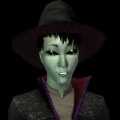 As hinted at in the story, this color green is not actually the color of the default alien skin I use, it's actually the evil witch overlay. As you can see, he was also rocking his evil witch duds just casually around the neighborhood, which is not the case in this story. The only reason I can use the description I gave as a hint here is because I'm writing up these notes, though - the unmodded evil witch overlay actually looks like this.